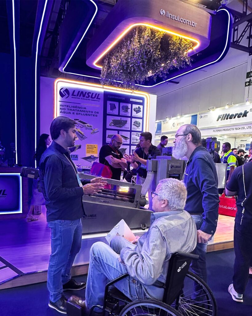 Em um cenário onde a otimização de custos e a responsabilidade ambiental são imperativos, o estande da Linsul atraiu atenção com soluções tangíveis que atacam diretamente os maiores desafios de Estações de Tratamento de Esgoto (ETEs) e Efluentes Industriais (ETEI’s), alinhadas com a nossa visão de Tecnologia e Experiência a favor da Sustentabilidade Eficiente.